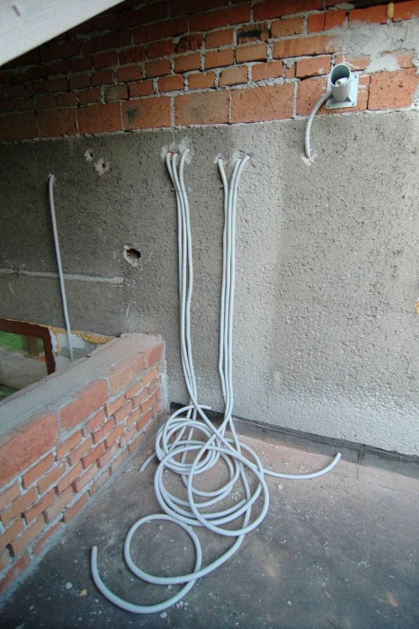 Máme tak připraveny místa pro montáž světel, instalaci čidel na rozsvěcení světel za tmy, venkovní zásuvky na balkóně, budoucí "vrátník" u hlavních dveří a podobně. Ke každému nosiči je přiveden husí krk a ten je zakončen většinou na půdě u rozvodných lišt. Není tak problém s napojením i přípanou výměnou kabelů.