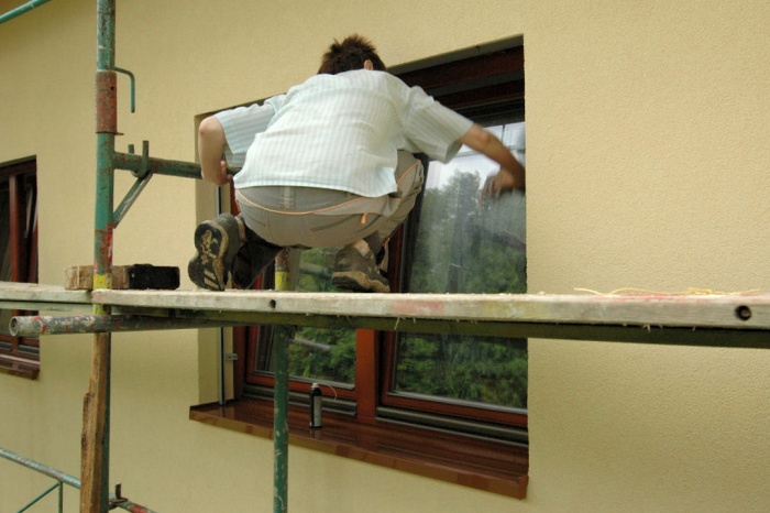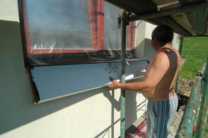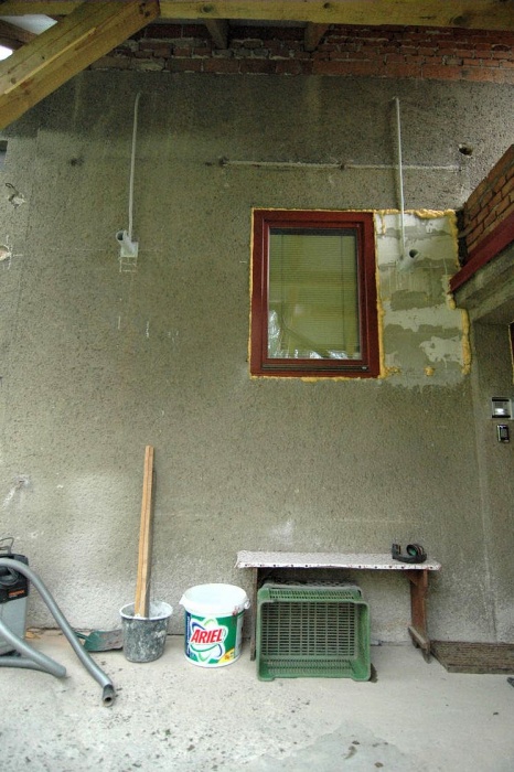 Poslední, před úklidem a leštěním oken, byla instalace žaluzií a doplnění bočními vodicími lištami. Narazili jsme na okraj hliníkového zakončení a tak ke slovu přišel pilník a vrtačka. Lišty pěkně sedly, žaluzie sjížděly a vyjížděly - tedy, až na jednu, ta sjela jen dolů a nahoru se jí nechtělo. Chvilka pátrání a prokázalo se, že je přerušena jedna žíla vodiče. Asi se montážník trefil připevňovací kotvou přesně. A to vypadalo zoufale - zateplení hotové, fasáda svítí novotou a kabel je na dva díly... Správný chalupář si ale poradí, nakonec jsme sundali zasaženou žaluzii, ze spodní části truhlíku vyvrtali otvor a izolaci propíchli asi dva metry dlouhým silným drátem směrem ke střeše. Na druhý pokus vylezl drát přesně tam, kde bylo plánováno. Výměna kabelu pak byla otázkou chvilky a žaluzie zase pracovala. Chlapi montážníci mi dosud dluží basu piv za útrapy a škodu.