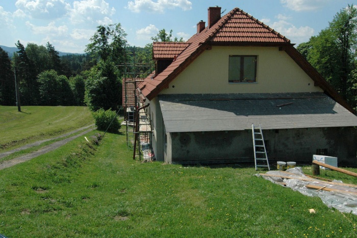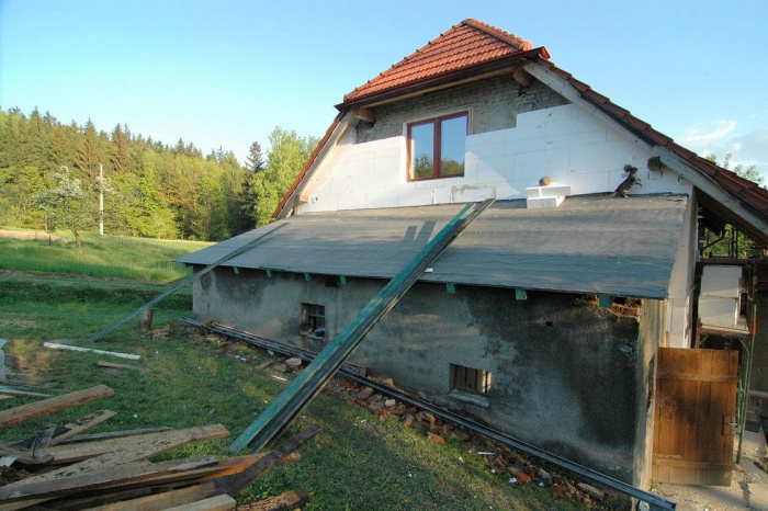 To je samostatná kapitola. Nemůžeme zateplovat, dokud není vyřešena střecha chléva. Ta byla ve stavu, vhodném akorát tak ke zbourání. A tak se souběžně se zateplením musela řešit i výměna této střechy. Těmto pracím je věnována samostatná kapitola.