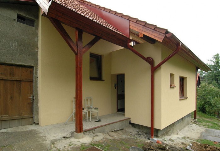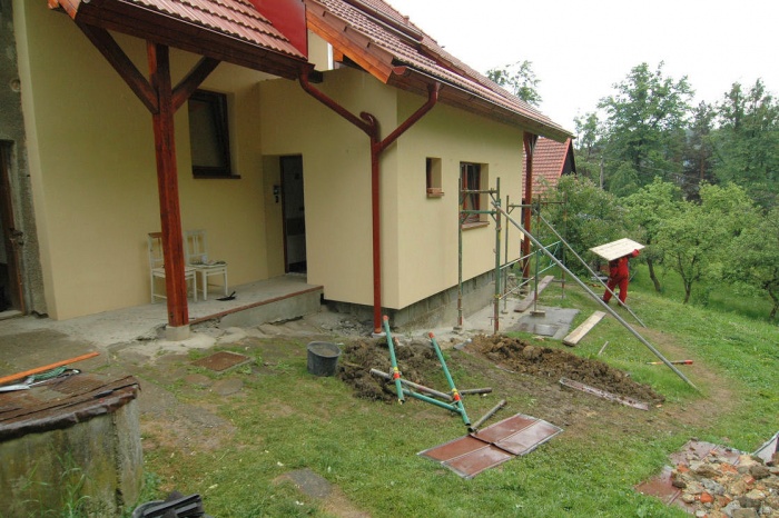 Když bylo téměř hotovo, uvědomili jsme si, že máme několik míst, které přicházejí v zimě ke styku se sněhem a vlhkem - stěna balkónu, stěna u zadních dveří, kam vítr sníh nafouká a severní roh východní stěny, kde se běžně sníh kupí až na fasádu.