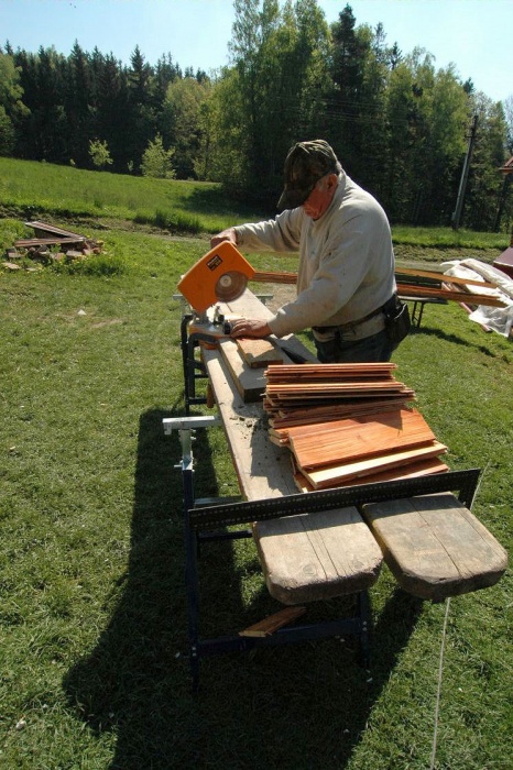 Polubky se natíraly ve stodole, museli jsme na to připravit speciální patrový stojan, aby bylo možné natřené palubky ukládat k doschnutí. To byl takový fofr, že jsem si ani nestil udělat fotodokumentaci. No nic, patentovat to nebudu a tak to nevadí. Opět jsme si říkali, ještě, že máme tu stodolu.