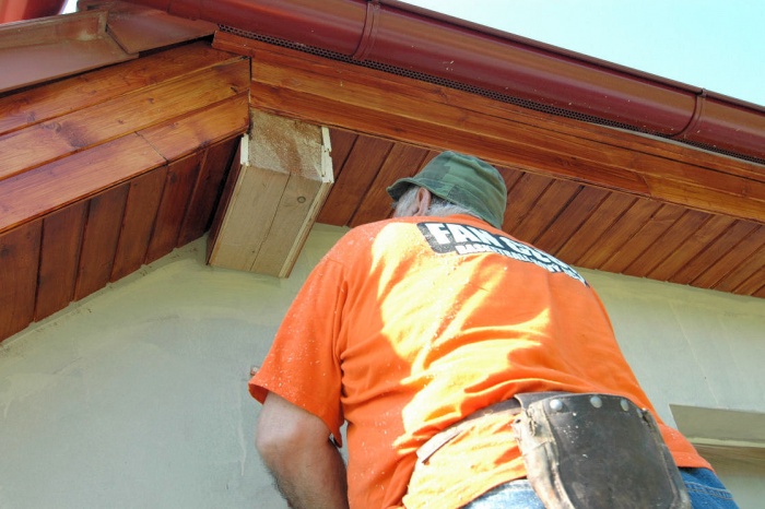 Kdyby byla fasáda hotová a podbití ne, asi by to nevypadalo dobře a tak bylo rozhodnuto - spolu se střechou budeme zajišťovat i kompletní podbití včetně ošetření dřevěných prvků a sloupů vně baráku. To nám poměrně pěkně navýšilo rozpočet, ale co naděláme. Zrealizovat se to musí a když ne teď, tak zřejmě už nikdy - znáte to...