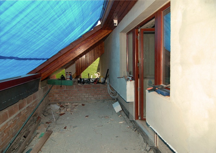 Půl zimy to vypadalo dobře, a po Silnestru se na jednom místě objevily stopy vlhkosti, někde pomalounku, ale jistě zatéká. Čekáme na teplé dny a musíme to opravit.