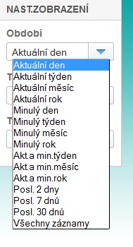 Pokud je potřebné zobrazit jiné časobvé období, lze zvolit z již připravené nabídky: