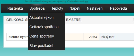 Podobně lze přistupovat k zobrazení aktuálního výkonu (příkonu), zobrazení celkové spotřeby, ceny spotřeby za zvolené období a detailní stavy počítadel.