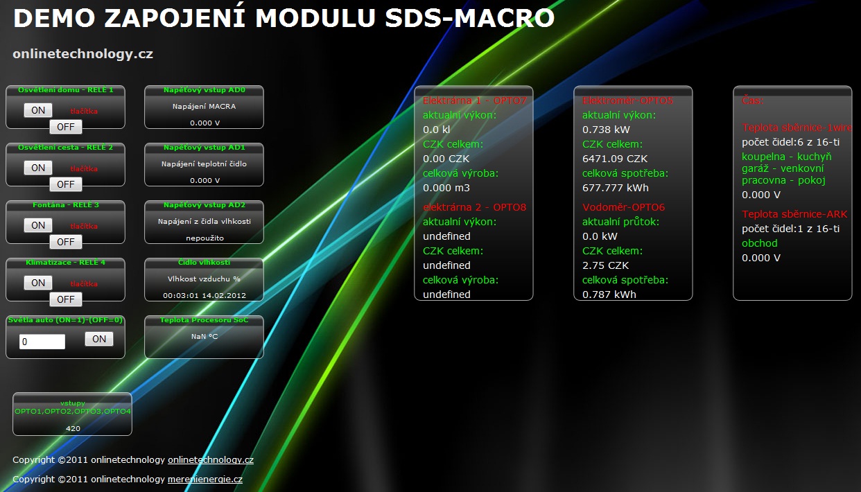 SDS má vestevěn webovský server, který lze modifikovat, jedná se o jednu stránku, na které lze zobrazit a popsat měřené parametry. Prostřednictvím stránky lze také ovládat dvě vestavěná relé...