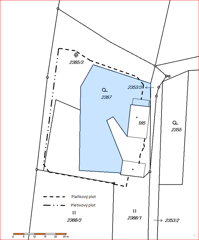 To není až tak jednoduché, otázku plotu jsme řešili již dlouho, dá se říci - dlouhá léta. Postavit plot prostě jen tak kolem baráku jednoduše nešlo. Problém se ukázal již při první návštěvě stavebního úřadu - oplocení se dá postavit pouze tam, kde je to povoleno. Omezení bylo v typu pozemku, který obklopoval náš barák. A tak jsem museli nejprve požádat o změnu územního plánu - to trvalo dva roky. Naštěstí jen dva, měli jsme štěstí, územní plán obce se právě upravoval s platností od 1. 1. 2014. To se hodilo. Jen kdybychom měli jasno v tom, kudy vlastně plot má vést.