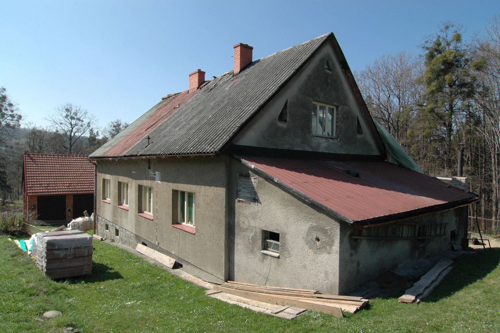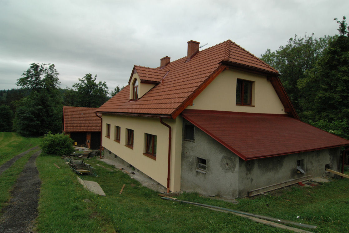 Nakonec jsme se rozhodli - zkomplikujeme si stavbu a zachováme chlév. To ale znamenalo jednoznačně nutnost vyřešení střechy. Ta se opírá o severní štítovou zeď a stane se součástí zateplovacího systému. Stav střechy již po těch letech byl žalostný.